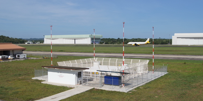 矗立在文莱斯里巴加湾国际机场跑道旁的GLC-24A型对流层风廓线雷达,由中国电科14所南京恩瑞特实业有限公司自主设计制造。该款雷达是机场的“观风利器”,采用全相干相控阵数字化脉冲多普勒体制,最高探测高度可达16km,实现对边界层、对流层的大气风场观测、温度探测,得到大气不同时刻各高度层的风向、风速精准数据,为斯里巴加湾国际机场起降的航班安全保驾护航。作为文莱引进的首台风廓线雷达,该型雷达除了承担机场气象保障任务,至今还一直承担着文莱全国天气预报和研究等工作。